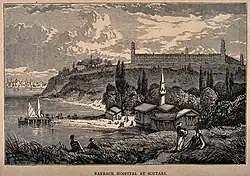 Borrowed from Ottoman Turkish قیشله (kışla, “barracks”).