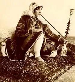 یک زن ایرانی در حال کشیدن قلیان.