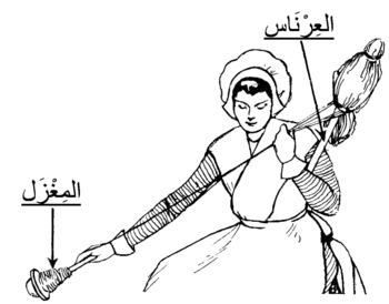 غزل (حرفة) on the Arabic Wikipedia.Wikipedia ar- Freytag, Georg (1835) “مغزل”, in Lexicon arabico-latinum praesertim ex Djeuharii Firuzabadiique et aliorum Arabum operibus adhibitis Golii quoque et aliorum libris confectum (in Latin), volume 3, Halle: C. A. Schwetschke, page 274