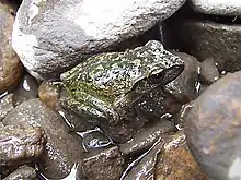 Inherited from Sanskrit भेक (bheka). Cognate to Sinhalese බෙක (beka)