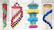- a wooden/woolen toy(or as a decoration) with balls hanging from the main body