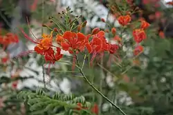 - dwarf poinciana (Caesalpinia pulcherrima,[1] syn. Poinciana pulcherrima[2]); originally from Southeastern Mexico to Central America and introduced into Bangladesh and India.[3]