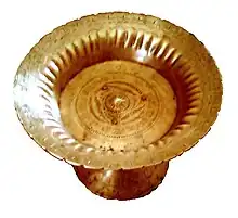 Inherited from Sanskrit ৱৰ্ত (varta, circular object; something made of metal). Cognate with Bengali বাটা (baṭa, box for betel), Odia ବଟା (bôṭa, metal pot for betel).