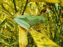 - frog; Any of the tail-less amphibians belonging to the order Anura.