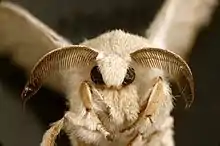 - silkmoth; the moth Bombyx mori, the larvae of which produce cocoons that yield silk.