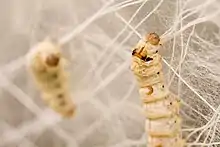 Silkworms producing silk