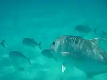 - giant trevally, Caranx ignobilis large marine fish belonging to the family Carangidae.
