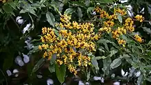 Cognate with Tamil வேங்கை (vēṅkai). (This etymology is missing or incomplete. Please add to it, or discuss it at the Etymology scriptorium.)