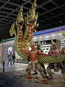 the nāga Vāsukī being pulled by demons during the churning of the Milky Ocean, a sculpture at Suvarnabhumi Airport, Thailand