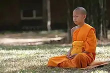1. (Buddhism) sāmaṇera: ordained male who merely observes 10 precepts, as opposed to ภิกษุ (pík-sù) who observes 227 precepts.
