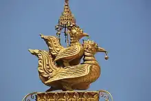 A statue of the two swans at Shwemawdaw Pagoda, Bago, Myanmar.