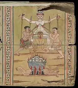 1. (Buddhism, Hinduism) preta: a type of supernatural creature born to undergo punishment or suffering as a result of sinful deeds committed in previous lives.