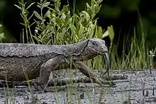 - (zoology) (ตัว~) Asian water monitor: the lizard Varanus salvator of the family Varanidae.