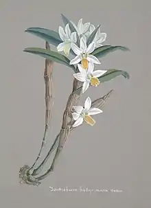 - (botany) Rough Lipped Dendrobium: the orchid Dendrobium scabrilingue of the family Orchidaceae.