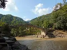 From Old Georgian ჴიდი (qidi), from Proto-Georgian-Zan *qid- (“bridge”), probably from Proto-Kartvelian *qed-. Cognate with Mingrelian ხინჯი (xinǯi) and Laz ხინჯი (xinci). See Old Georgian for more. The similarity with Ossetian хид (xid) and Hungarian híd is accidental.