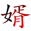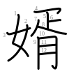 婿 (Kangxi radical 38, 女+9, 12 strokes, cangjie input 女弓人月 (VNOB), four-corner 47427, composition ⿰女胥)