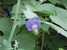 Literally "American bugle flower," from 미국(美國) (miguk, “USA”) + 나팔(喇叭) (napal, “bugle”) + 꽃 (kkot, “flower”). Not to be confused with Jeju 미국나팔꽃 (migungnapalkkot).