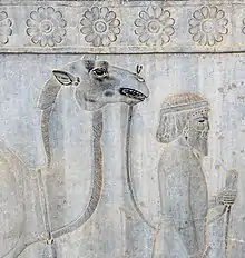 An early 5th century BC relief of a Bactrian tribute bearer. This relief is from the eastern stairs leading to the Apadana at Persepolis.
