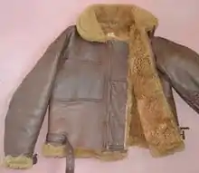 1. A short leather jacket, with an elasticated waist and cuffs, a fleece collar and a zip front.