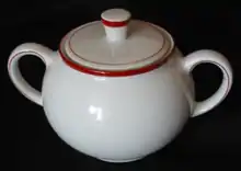 - sugar bowl (a small receptacle for serving sugar on a table or on a tray)