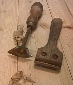 - card scraper (tool consisting of a metal plate with a sharpened edge)
