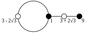 The dessin d'enfant arising from the rational function f = −(x − 1)3(x − 9)/64x. Not to scale.