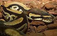 From ejò (“snake”) + mọ́námọ́ná (“partial reduplication of mọ́ná "to be bright"”), literally “The multicolored snake”.