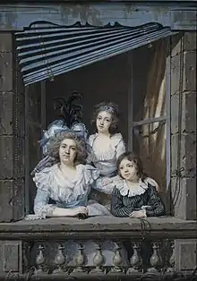 - […] framför [mitt] sovrumsfönster löpte en liten fransk balkong.