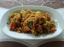A recent adaptation in the southeast of Arabic كِسَر (kisar, “fragments”), less likely an alternative vocalization of كَسْر (kasr, “fraction, breaking”) or even كِسْر (kisr, “limb”) when used after a name of a cooking-pot meaning a pot “of several things joined together”.[7]