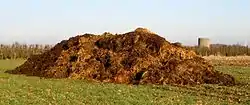 - manure (mixture of farm animal excrement and bedding used as fertilizer)