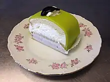 - a marzipan cake; any cake that is covered by or containing marzipan