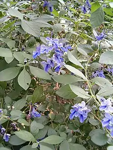 1. (blue) butterfly bush (Rotheca myricoides,[2] syn. Clerodendrum myricoides[5][4]); recently reported that decoction of a shoot or roots used for treating STDs, including syphilis and gonorrhea.[2][3]
