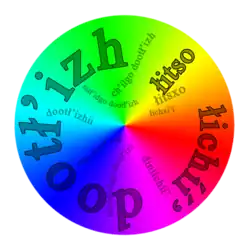 | łigai | łibá (dark gray: dinilzhin) |
