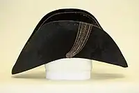 - (historical, military) bicorn (two-cornered hat worn by European and American military and naval officers from the 1790s)