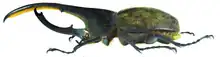 a male Hercules beetle (Dynastes hercules), a rhinoceros beetle