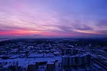 - The colour that the sky sometimes takes at sunrise and sunset, blue in places and pink in places (sometimes with the sky being blue and clouds pink, sometimes with the whole sky being a spectrum from blue to pink).