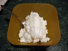 - A dessert made by mixing clean, fresh snow with a small amount of milk or cream and flavouring agents such as vanilla and sugar, causing the snow to melt and congeal into an ice-cream-like substance.